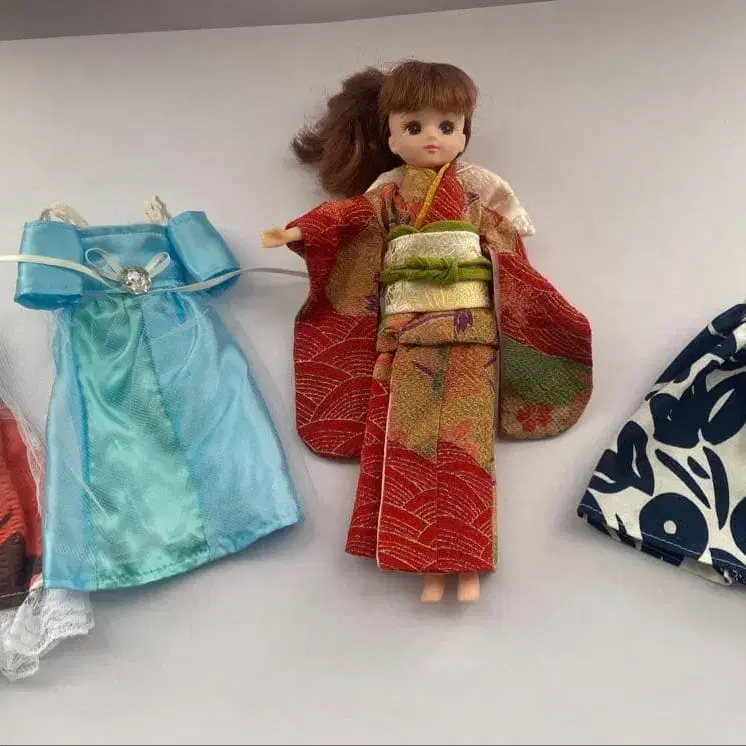 다채로운 디자인의 리카짱 옷 갈아입기 의류 4세트. 인형은 포함되지 않습니다. - 아이템명: 리카짱 옷 갈아입기 의류 4세트 - 색상: 빨간색, 파랑, 브라운, 화이트 - 스타일: 기모노, 드레스, 스커트 - 소재: 천, 레이스 - 디자인: 꽃무늬, 레이스 포함 - 대상 연령: 3세 이상 설날의 화려한 옷으로 기모노, 오비는 별도이지만 스냅 버튼으로 쉽게 옷을 갈아입힐 수 있습니다. 드레스, 스커트도 스냅 버튼으로 쉽게 옷을 갈아입힐 수 있습니다. 할머니의 손수 작업이라 조금 서툰 부분이 있을지도 모릅니다? 방문해 주셔서 감사합니다.