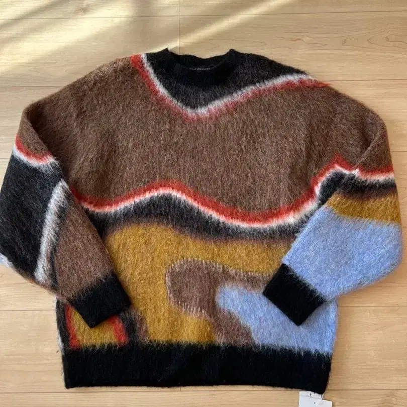 AMERI 오리지널 패턴으로 제작한 모헤어 오버사이즈 니트탑.