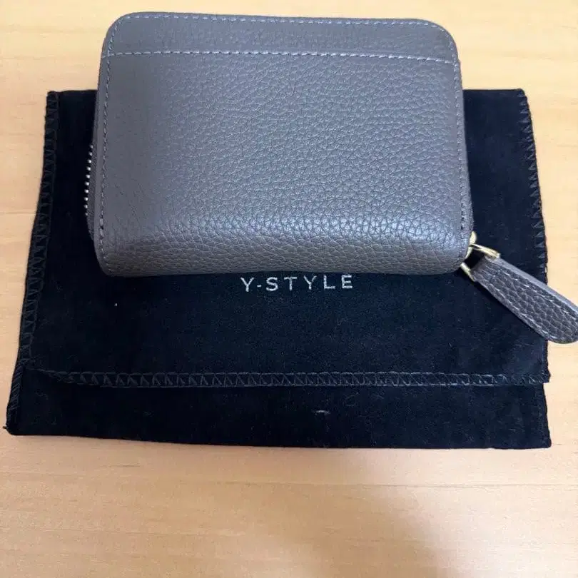 고급 천연 가죽 소재의 차콜 블랙 색상 접이식 지갑으로, 지퍼식으로 컴팩트한 미니 지갑입니다.