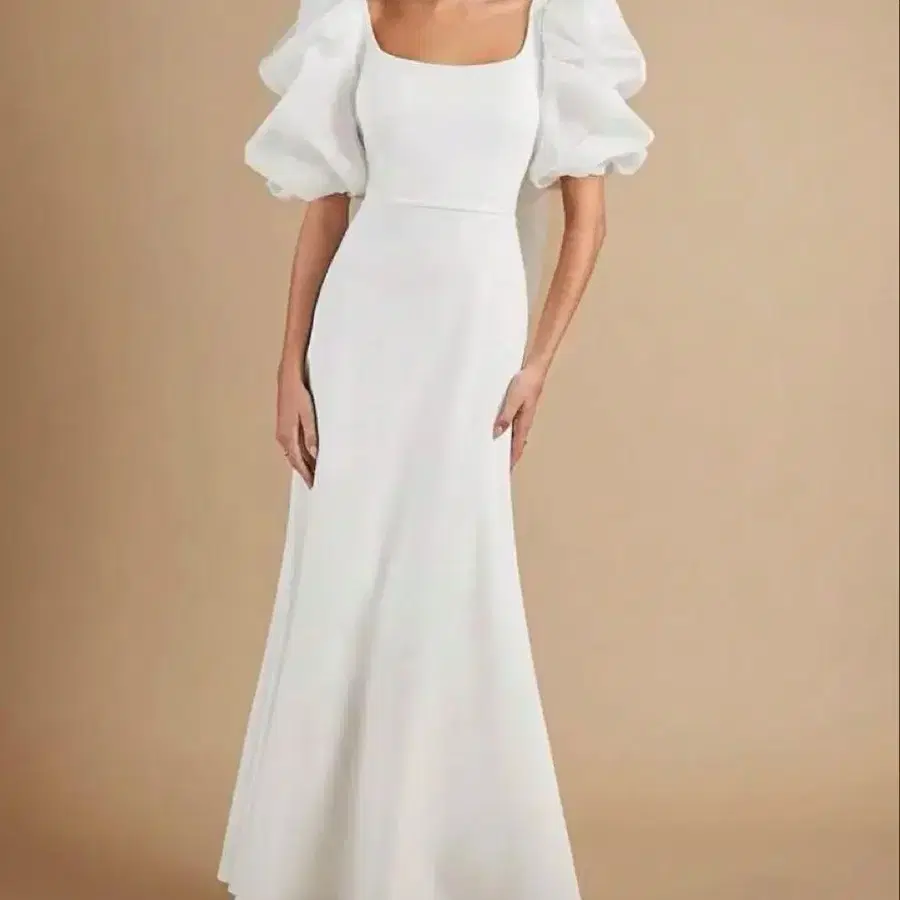 웨딩 드레스 화이트 원피스 드레스 2차 모임 퍼프 슬리브 한국 사전 촬영