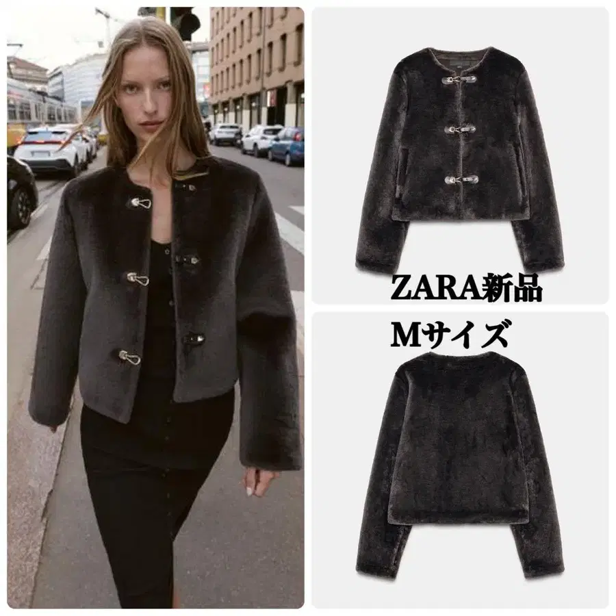 ZARA 토글 버튼 인조 모피 자켓 M 사이즈 택 포함 새상품 브라운
