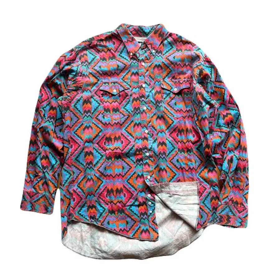 80s USA Wrangler 버튼 다운 셔츠 XL 올 패턴