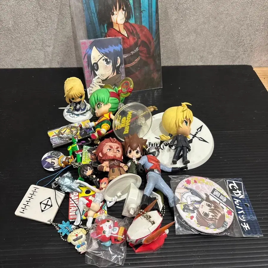 다양한 애니메이션 캐릭터 피규어와 굿즈 컬렉션. - 종류: 피규어, 키링, 배지, 엽서 - 캐릭터명: Fate 시리즈, 드래곤볼, 기타 애니메이션 캐릭터 - 수량: 다수의 캐릭터 굿즈 - 상태: 사용감 있음 - 특징: 다양한 캐릭터가 포함된 컬렉션 - 테마: 애니메이션, 만화 방문해 주셔서 감사합니다.