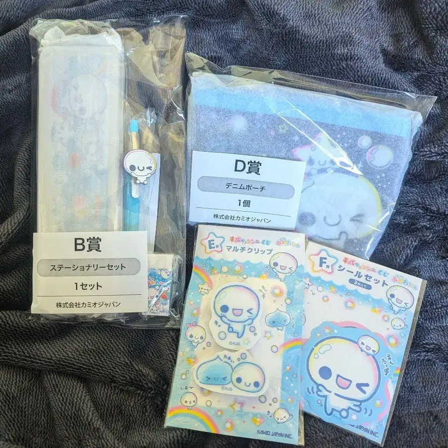 헤이세이 팬시 복권 아와와짱 4개 세트 B상 문구 세트 D상 데님 파우치 E상 멀티 클립 F상 씰 세트 모두 아와와짱 디자인입니다. 미개봉 새상품 #헤이세이팬시복권 #아와와짱
