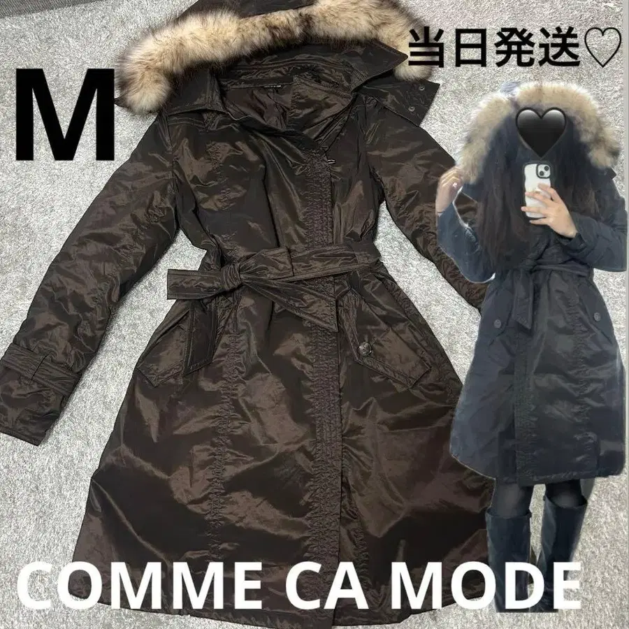 COMME CA MODE 롱 다운 코트 퍼 포함 후드 다크 브라운