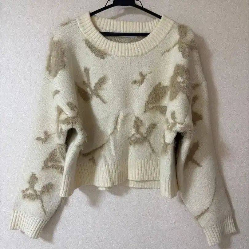 가격 인하! QTUME 아이보리 꽃무늬 크롭 니트