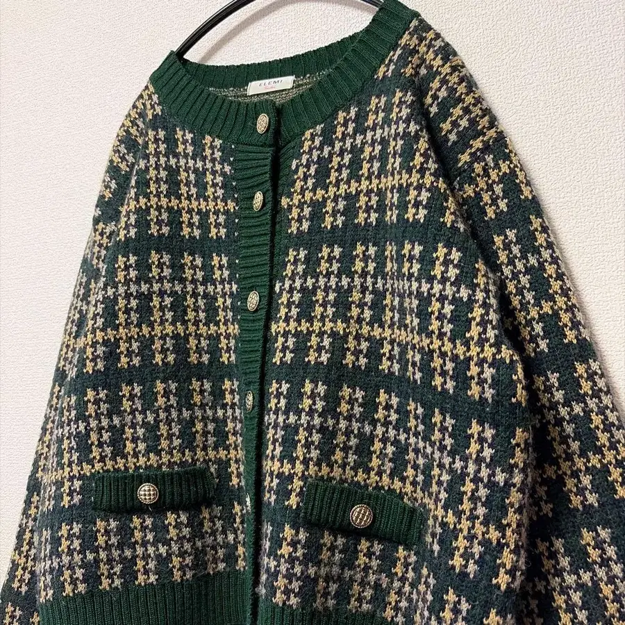 빈티지 니트 가디건 트위드 골드 버튼 레트로 울