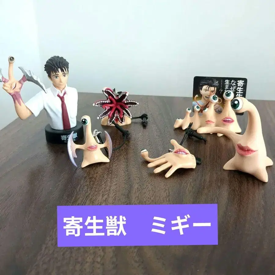 기생수 미기 피규어, 가챠가챠 6개 세트입니다. 개인적인 눈으로는 흠집 등이 보이지 않지만, 중고품이며 개인 보관품이므로, 예민하신 분의 구매는 삼가해 주십시오. 스트랩 이어폰 잭 메모 스탠드