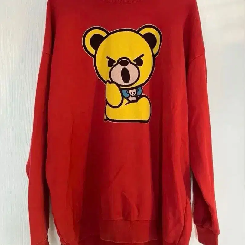 HYSTRIC GLOMOUR 곰 프린트 레드 오버 사이즈 맨투맨