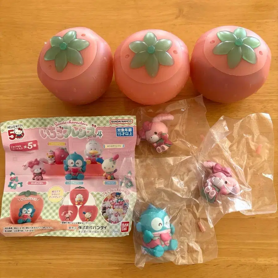 산리오 캐릭터즈 딸기 프렌즈 part 4 반다이남코 가챠 봄봄리본 2개 한교동 1개 모두 캡슐 포함입니다. 자택 보관품입니다.