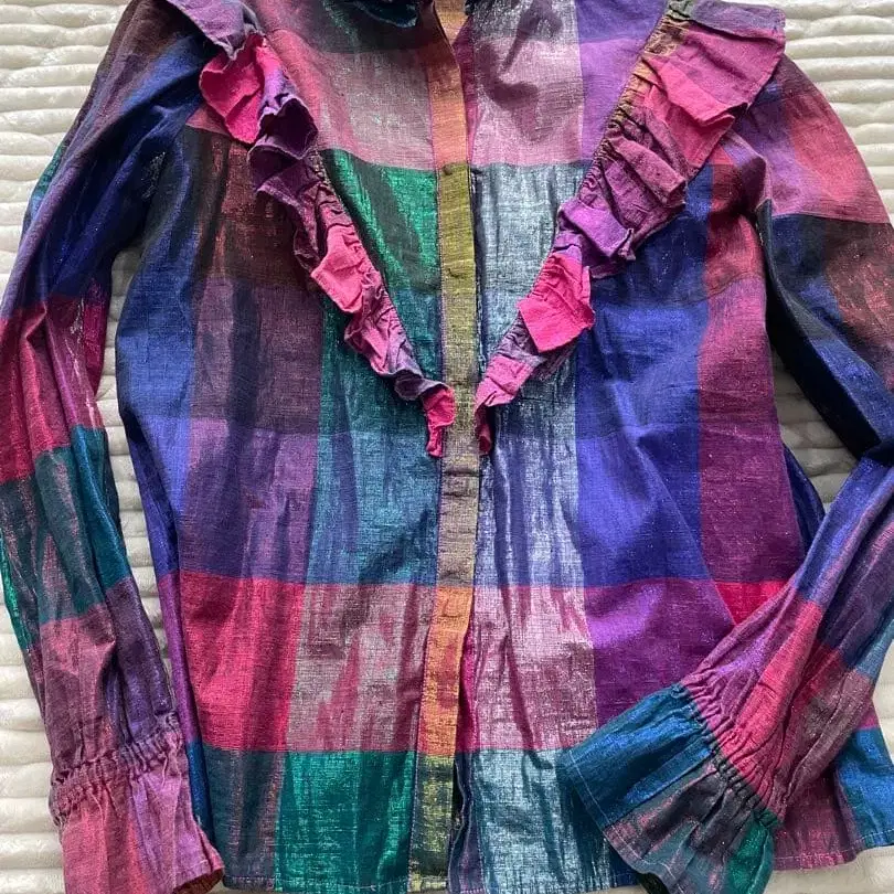 프릴이 달린 멀티 컬러 블라우스 화려한 셔츠 개성있는