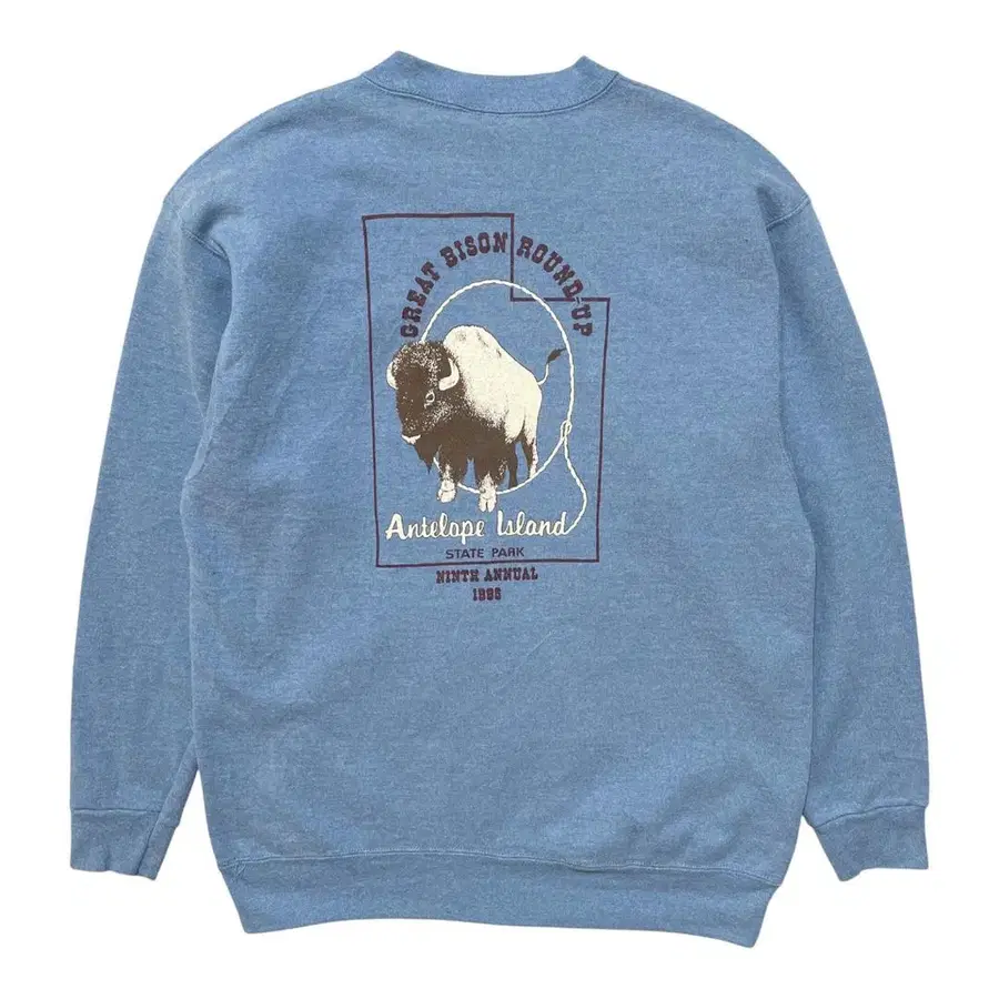 USA 구제 의류 그레이트 바이슨 라운드업 크루넥 맨투맨 트레이닝복 프린트 블루 남성용 L BD3101