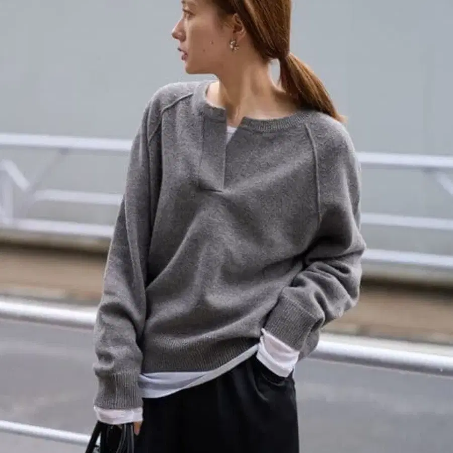 FRAMeWORK 미들 게이지 텐지쿠 헨리 풀오버 울 그레이
