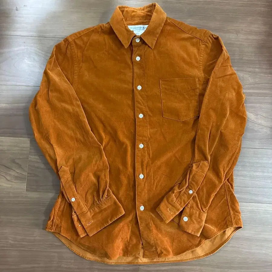 EEL Q 셔츠 오렌지 컬러의 잔골 코듀로이 셔츠입니다. 사용감이 적고 새상품급입니다. 어깨 너비 42 가슴 너비 48 기장 73 소매 길이 59