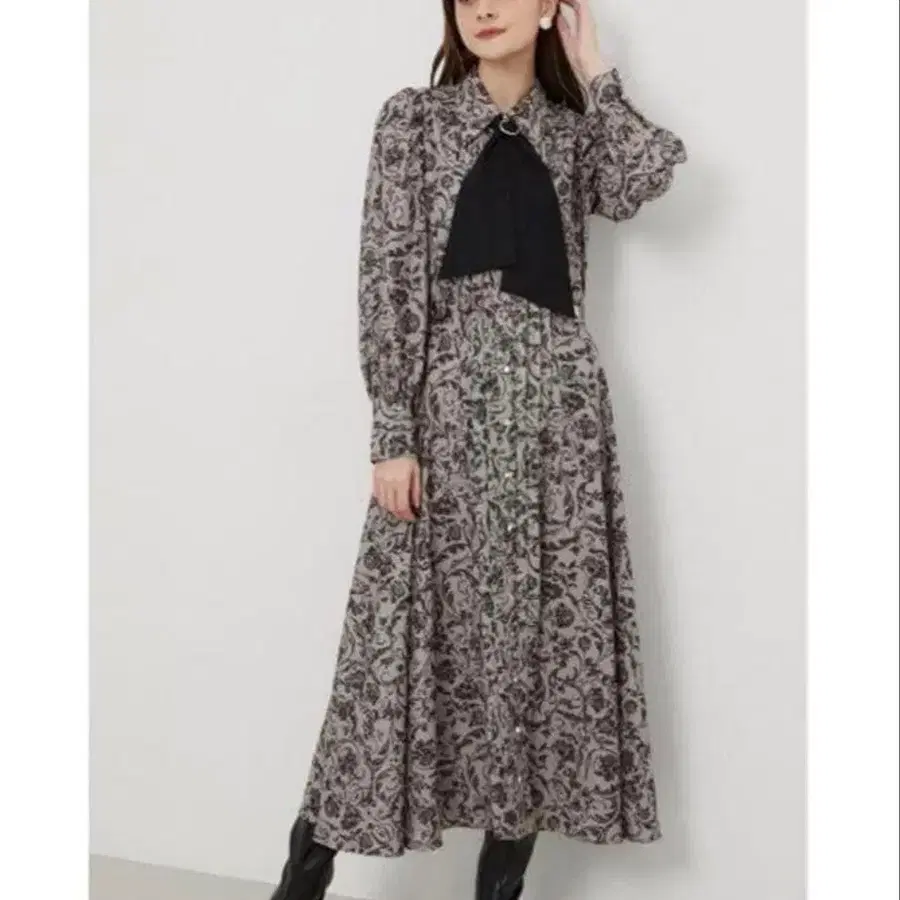 리엔다 아라베스크 보타이 셔츠 원피스 블랙 M