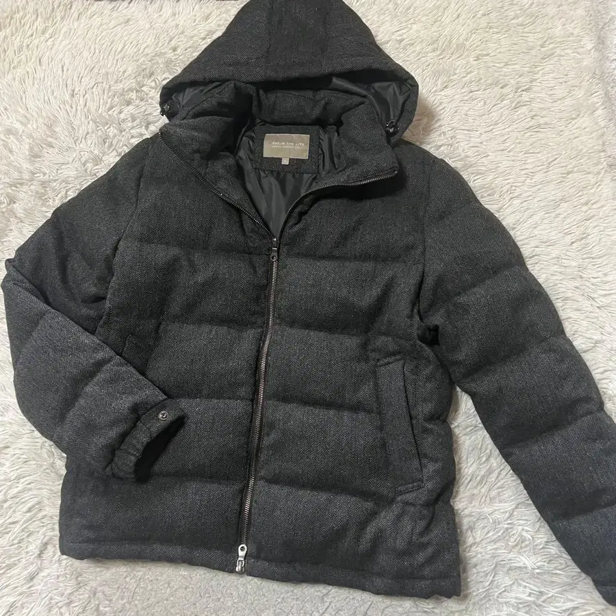 유나이티드 애로우즈 후드 부착 다운 자켓 헤링본 그레이 L
