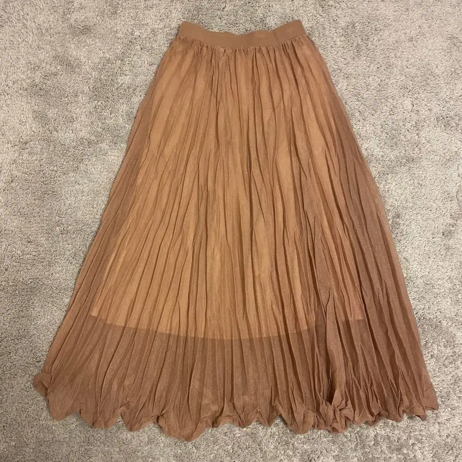 섬세하게 들어간 플리츠가 세로 라인을 강조하여 스타일업 효과를 기대할 수 있습니다. 비침이 있는 시어 소재가 가벼우며, 밑단은 비대칭 프릴 같은 디자인으로 되어 있어 움직일 때마다 살랑이며 사랑스러운 인상을 줍니다.