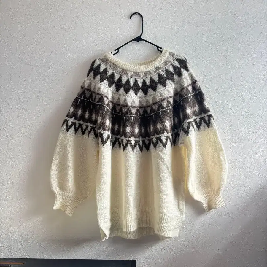 따뜻한 느낌의 노르딕 패턴이 귀여운 빅 실루엣 큐신 니트