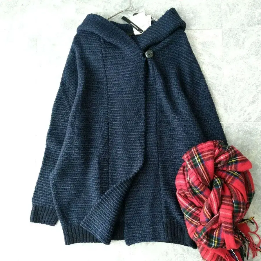 568 언타이틀 알파카 혼방 니트 후디 가디건 네이비