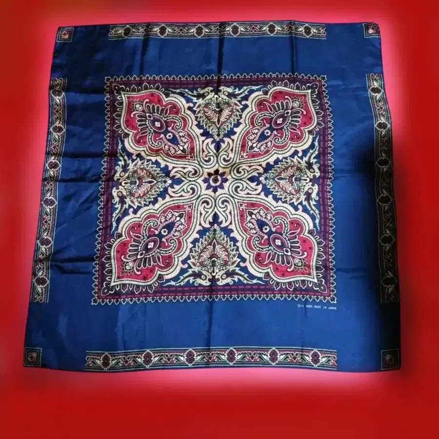 일본제 실크 100% 네이비 페이즐리 무늬 스카프.