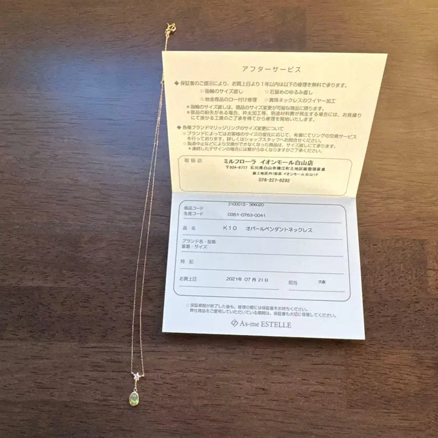 밀플로라 K10 오팔 펜던트 목걸이