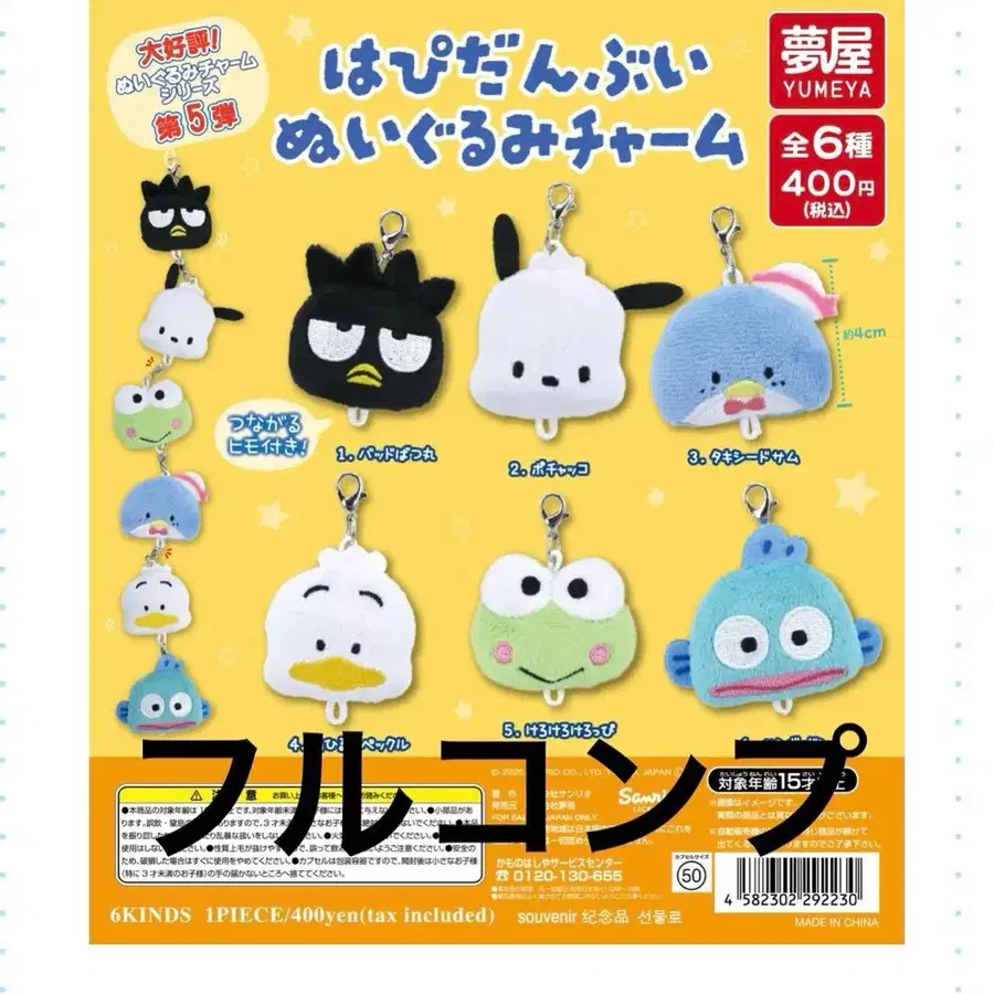 산리오 하피단부이 봉제 인형 참 풀 컴프
