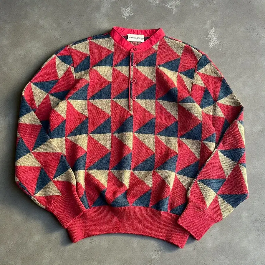 25M102 ⇩묶음 구매 시 더욱 저렴하게⇩ #kai기타아우터 보기 #kai기타빈티지구제 의류 보기 어깨 너비 45 가슴 너비 54 기장 62 소매 길이 66 PIERRE CARDIN 피에르 카르댕 울 혼방 밴드 카라 하프 버튼 니트 M 방문해 주셔서 감사합니다. **PIERRE CARDIN (피에르 카르댕)**의 니트 풀오버입니다. 상품 특징 • 시선을 사로잡는 대담한 기하학 패턴의 편직 (레드, 네이비, 베이지 계열). • 목 부분은 깔끔한 밴드 카라 (스탠드 카라)이며, 하프 버튼 사양. • 소재는 울 혼방으로 따뜻하며, 가을/겨울에 활약할 아이템입니다. • 사이즈 표기: M 상태 눈에 띄는 데미지 등은 없지만, 구제 의류에 이해가 있으신 분의 구매를 부탁드립니다. 사이즈: M 소재: 울, 아크릴 혼방 (이미지 택 참조) 색상: 레드, 네이비, 베이지 계열 한정판 구제 의류, US 구제 의류, 수입 구제 의류, 희귀 디자인 구제 의류 레트로 프린트 애니메이션 스포츠 브랜드 밴드 T 등, 그 외 다수 상품을 판매 중입니다. #kai기타아우터 보기 #kai기타빈티지구제 의류 보기