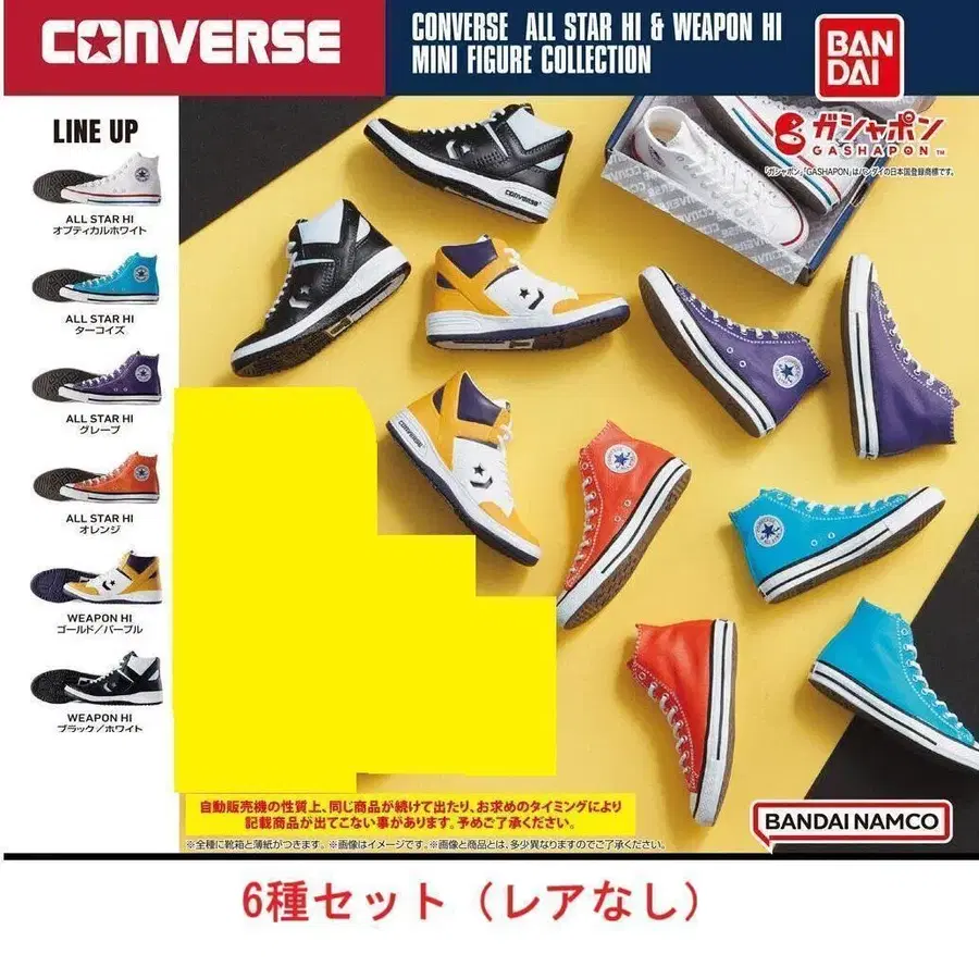 CONVERSE ALL STAR HI & WEAPON HI MINI FIGURE COLLECTION 6종 세트 CONVERSE ALL STAR HI & WEAPON MINI FIGURE COLLECTION 이 가샤폰으로 등장! 디테일에 끝까지こだわった 지극히 일품입니다. 실제 신발을 3D 스캔하여 원단감을 리얼하게 재현했습니다. 신발 속까지 신경 썼으니, 꼭 손에 넣어 들여다보세요. 전 종에 신발 박스 + 얇은 종이가 세트입니다. [ 상품 내용 ] ALL STAR HI 옵티컬 화이트 ALL STAR HI 터콰이즈 ALL STAR HI 그레이프 ALL STAR HI 오렌지 WEAPON HI 골드/퍼플 WEAPON HI 블랙/화이트 미니북 포함 캡슐 없음 가격 인하, 낱개 판매: 불가 캡슐 토이 특성상, 초기 흠집이나 도색 불량, 작동 불량 등이 있을 수 있습니다. 완벽한 상품을 원하시는 분은 구매를 삼가해 주십시오. 미개봉 또는 미사용품이므로, 초기 불량이나 부품 부족 등에 대해서는 구매자님께서 제조사로 문의해 주십시오. 구매 전에 프로필을 읽어보시고, 주의 사항을 숙지하신 후 구매해 주시기를 부탁드립니다. 배송된 상품에 문제가 있을 경우, 평가 입력 전에 연락 주십시오. 평가 입력을 하시면 거래가 종료되어 대응이 어려워집니다.