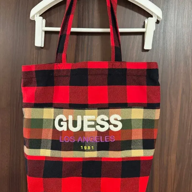 GUESS 체크 무늬 토트백