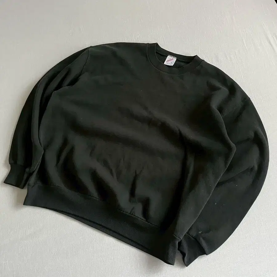 이 상품은 Jerzees의 블랙 맨투맨입니다. 미국제 특유의 튼튼한 속기모 원단과 가슴 너비에 여유가 있는 오센틱한 실루엣이 특징입니다.