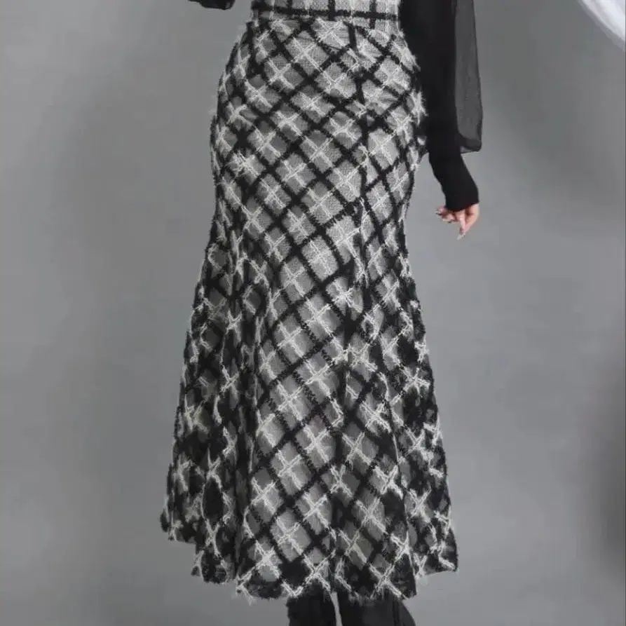 유메텐보 라메 트위드 체크 머메이드 스커트