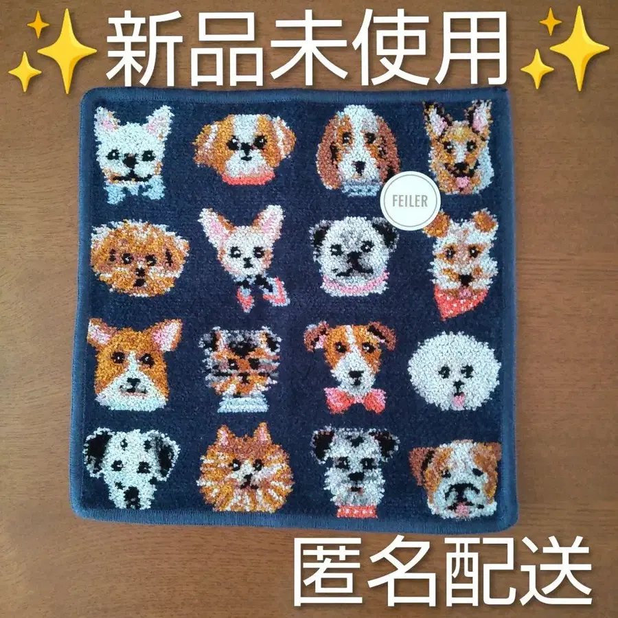 페이러의 러브러리 도기 패턴 손수건입니다. 멋을 낸 강아지들이 정말 귀엽습니다.