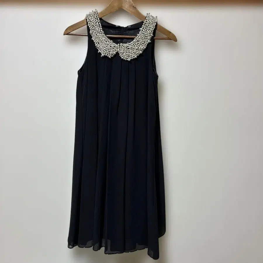 블랙 색상의 슬리브리스 원피스입니다. 옷깃의 펄 장식은 버튼으로 탈부착 가능합니다. 기장 약 86cm (개인 측정으로 인한 오차가 있을 수 있으나, 이해하신 후 구매 부탁드립니다.) 1회 착용 후, 집에서 보관했습니다. 색상 - 블랙 계열 얼룩, 찢김, 냄새 등 - 없음