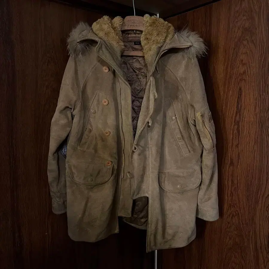 베이지 스웨이드 퍼(fur) 부착 자켓