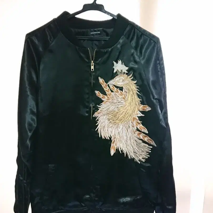 블랙 새틴 스카잔 봉황 자수 사이즈 46 M 사이즈