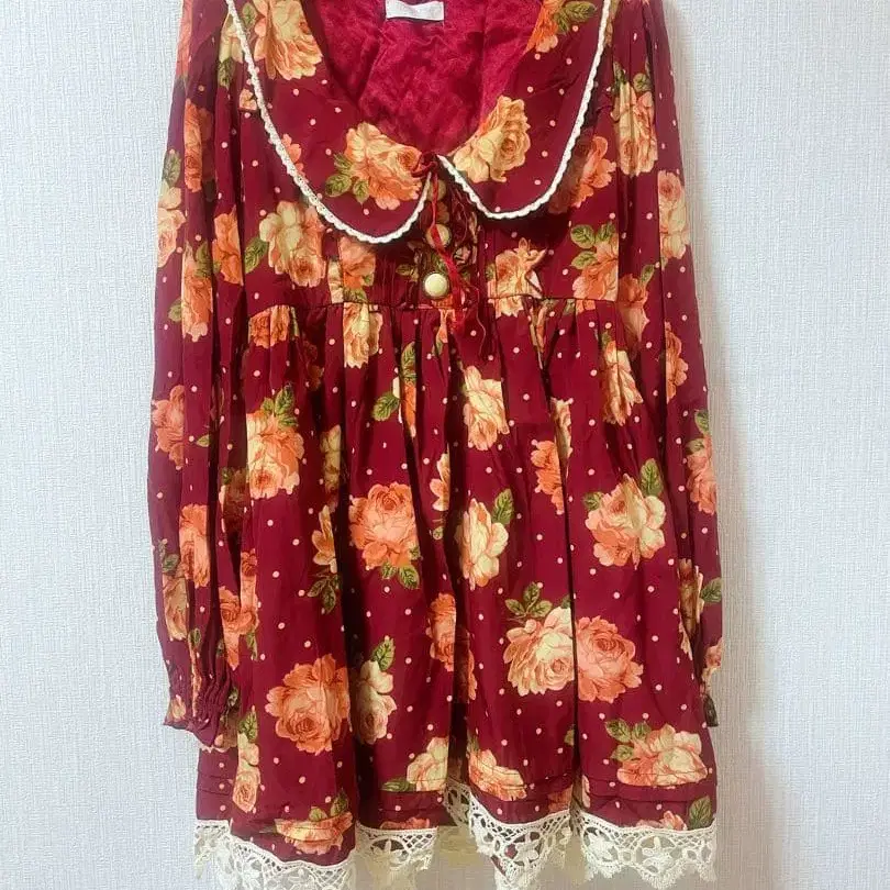 리즈리사 LIZLISA 보르도 꽃무늬 도트 원피스