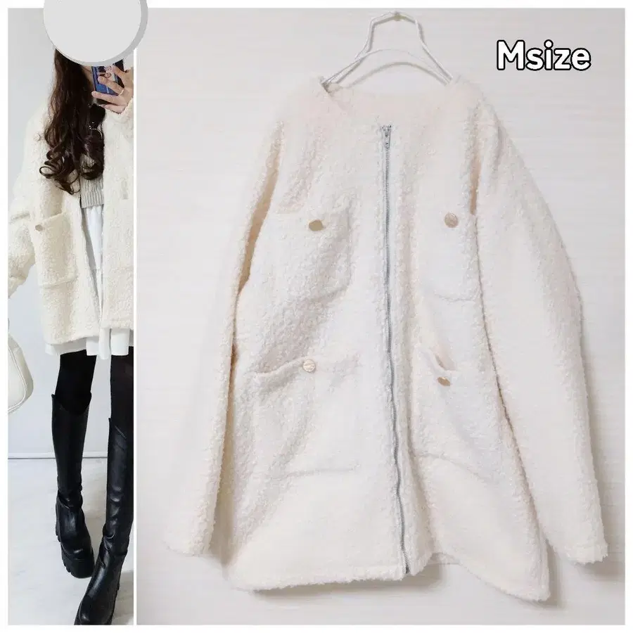 • 23구 노카라 자켓 화이트 울 숏 S
