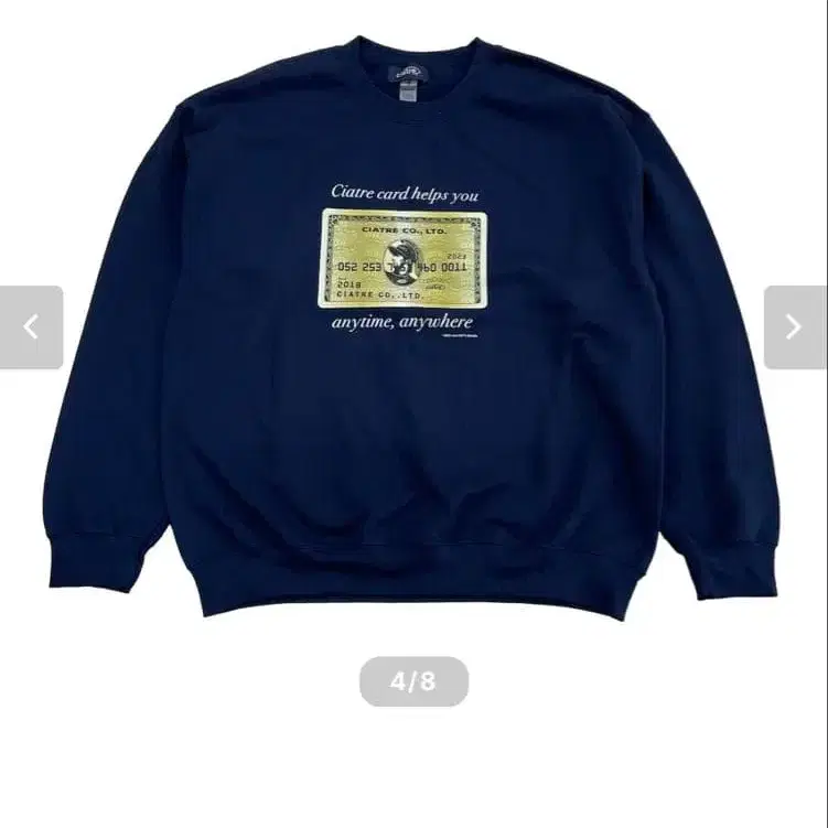 신용카드 디자인의 네이비 맨투맨 탑. - 브랜드: ciatre - 콜라보레이션 아티스트: KOTA OKUDA - 디자인: 신용카드 프린트 - 색상: 네이비 사용은 3~4회 정도입니다. 기장은 아래와 같습니다. M 어깨 너비: 55cm 가슴 너비: 56.5cm 소매 길이: 59cm 기장: 70cm L 어깨 너비: 59cm 가슴 너비: 60cm 소매 길이: 59cm 기장: 71cm XL 어깨 너비: 65cm 가슴 너비: 64.5cm 소매 길이: 59cm 기장: 72cm