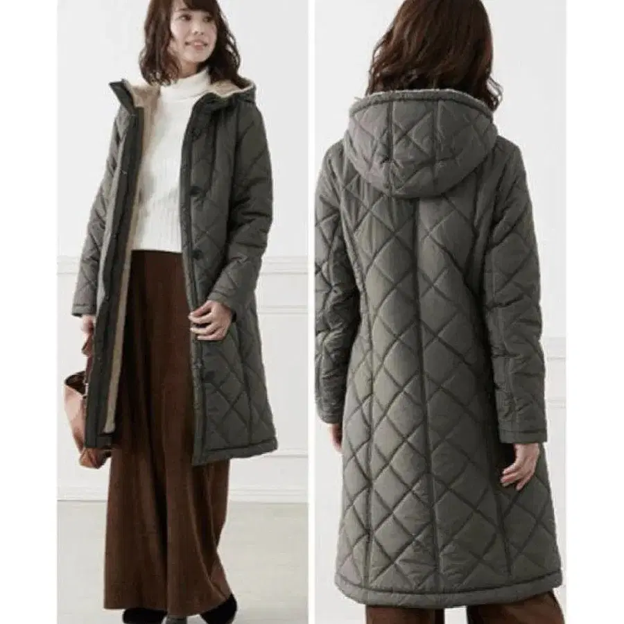 벨메종 따뜻한 벤치 코트 L 카키 퀼팅 후드 부착 보아 안감