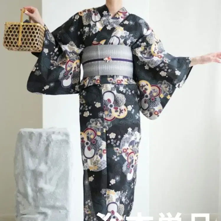 니코앤티크 여성용 유카타 꽃무늬 블랙 계열 면