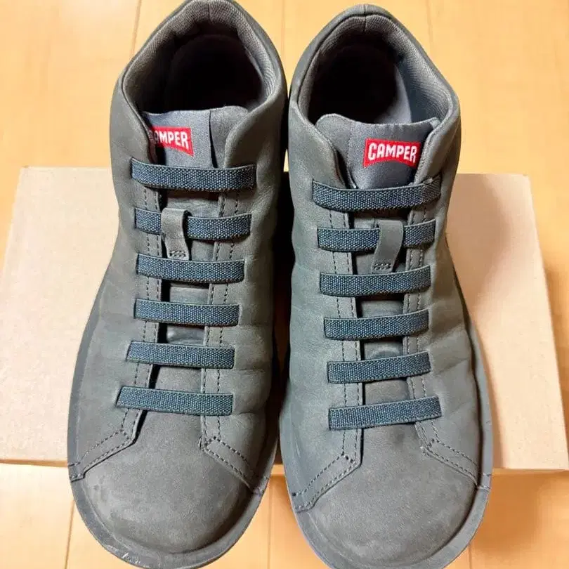 BEETLE (비틀) 구매했지만 신을 기회가 없어 판매합니다. 시착 정도라 사용감은 없다고 생각합니다. - 브랜드: CAMPER - 색상: 다크 그레이 - 스타일: 하이컷 스니커즈 - 밑창 색상: 블루 (실물은 사진보다 깊은 파랑입니다) - 디자인: 스트레치 슈레이스 - 소재: 스웨이드 - 로고: 뒷면에 CAMPER 로고 캠퍼에서는 익숙한 인기 라인입니다. 인솔과 아웃솔을 일체형으로 성형하여 매우 가벼운 신발입니다. 튼튼한 구조로 쾌적함과 기능성을 양립했습니다. 슈레이스에는 고무끈을 채용하여 그대로도 탈착이 가능한 사양으로 더욱 사용하기 편리합니다. 고무끈을 어퍼에 녹여낸 듯한 디자인은 심플함 속에 표정을 더하고, 음영마저 디자인에 담았습니다. 내추럴한 테이스트 속에 스포티한 인상을 주며, 보기에도 가벼움을 연출합니다. 인솔에는 저반발 소재를 채용하여 가볍고 쿠션감이 좋은, 매우 신기 편한 신발이 되었습니다. 실루엣은 둥글고 약간 커 보이지만, 약간 컴팩트한 핏하기 쉬운 사이즈감입니다. 부드러운 그레이 색상으로, 밑창의 블루 라인이 포인트가 됩니다. 하이컷 디자인은 가을/겨울 시즌 한정으로 전개됩니다. 데님은 물론, 다크 톤의 팬츠와도 궁합이 좋습니다. 스웨이드 소재의 그레이 하이컷 스니커즈, 스트레치 슈레이스 포함.