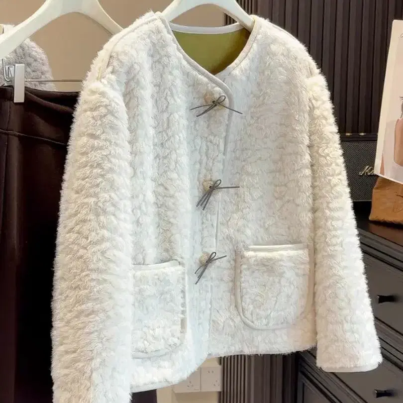 푹신하고 따뜻한 겨울 아우터입니다. 소매의 접힌 부분이 귀여워 외출이나 모임, 데이트에