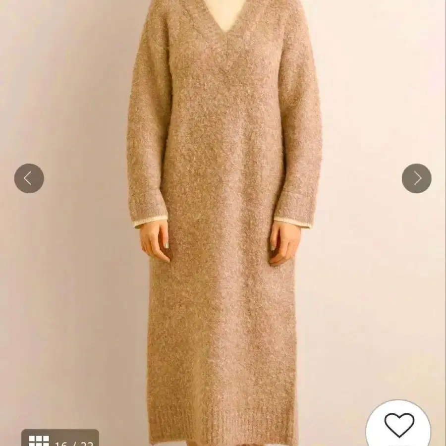 페이크 레이어드 디자인의 원피스입니다. 오버 사이즈의 릴랙스감과 스트레이트로 떨어지는 실루엣이 어우러져 내추럴하면서 모던한 인상을 줍니다. 레이어드하는 수고 없이, 한 장만으로 스타일링이 완성되는 디자인이 매력적입니다. [ 소재 ] 표정이 풍부한 부클레 얀을 고급스럽게 사용했습니다. 포근하고 입체적인 느낌이 빛을 부드럽게 머금어 보기에도 따뜻함을 더합니다. 표면의 요철이 만들어내는 음영이 깊이감을 더해주며, 심플한 실루엣을 돋보이게 하는 마무리입니다. 부클레 특유의 리치한 터치와 존재감을 마음껏 즐길 수 있는 한 장입니다. [ 스타일링 ] 한 장만으로 레이어드 스타일의 코디네이트가 완성됩니다. TOP 소재감이 돋보이며, 옷차림이 완성되는 원피스입니다. 부츠를 매치하면 성숙한 느낌으로, 스니커즈와 매치하면 릴랙스한 캐주얼 스타일로 연출할 수 있습니다. 부드러운 니트 소재의 베이지 롱 원피스, 슬릿 디자인으로 활동성까지 갖추었습니다. - 색상: 베이지 - 스타일: 롱 원피스 - 소재: 니트 - 디자인: 슬릿 포함 - 소매 길이: 긴팔 사용하시는 모니터에 따라 색감이 실제와 다르게 보일 수 있습니다. 양해 부탁드립니다. 시착만 한 상품이지만, 개인 보관한 유즈드 상품이므로 사소한 부분을 신경 쓰시는 분은 구매를 삼가해 주시기 바랍니다.