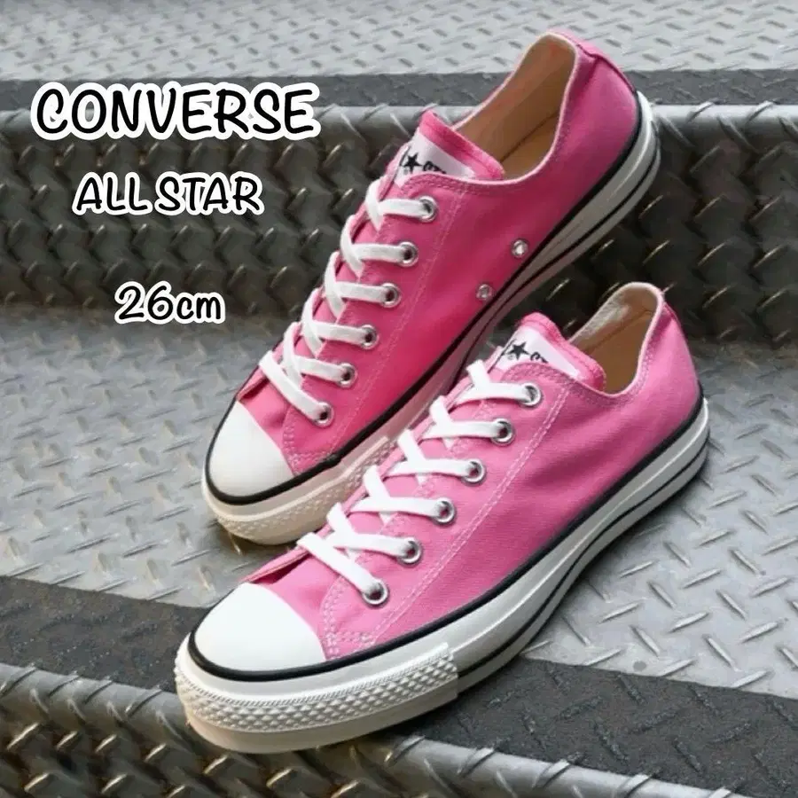 발색이 좋은 클래식한 핑크를 제안합니다. 힐 라벨 하단에 [ MADE IN JAPAN ] 프린트와 미색 테이프로 클래식함을 연출했습니다. 미색 캔버스에 적자로 프린트된 컨버스 로고는 일본 국기를 이미지화했습니다.