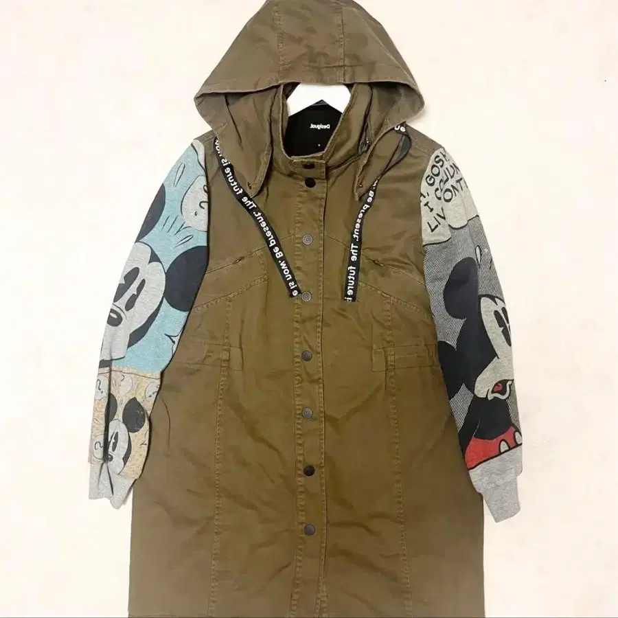 미키마우스 후드 모즈 코트 Desigual 카키