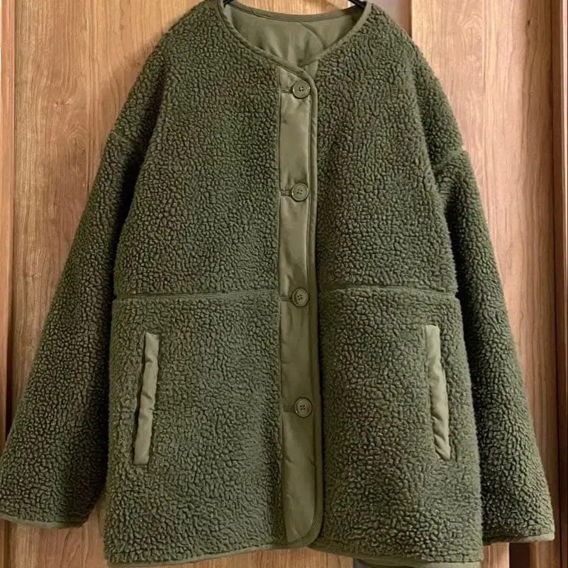올리브 그린 보아 자켓, 플리스 소재로 따뜻하며 단추식 디자인입니다. 리버서블입니다. 많이 착용하지 않아 전체적으로 깨끗하다고 생각합니다. M 사이즈이지만, 넉넉하게 나와서 사이즈감은 L 사이즈 정도라고 생각합니다. 만약을 위해 실측치수 확인 부탁드립니다. - 색상: 카키 - 스타일: 단추식 - 포켓: 앞면에 포켓 있음 실측치수 ( 보아 면에서 ) 어깨 너비 58 가슴 너비 60 기장 69 소매 길이 51 방문해 주셔서 감사합니다.