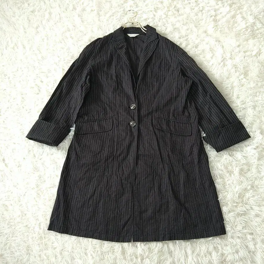 SPECCHIO 스트라이프 롱 자켓 트렌치코트 40 블랙