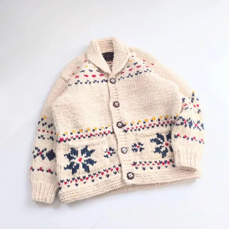 캐나다제 메리노울 핸드 니트 가디건 버즈아이 노르딕