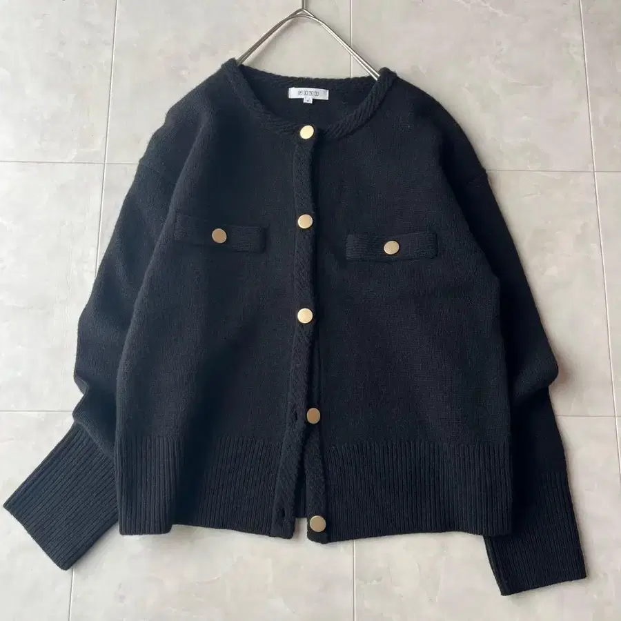 PLST 플라스테 노카라 니트 자켓 골드 버튼 블랙 M 울