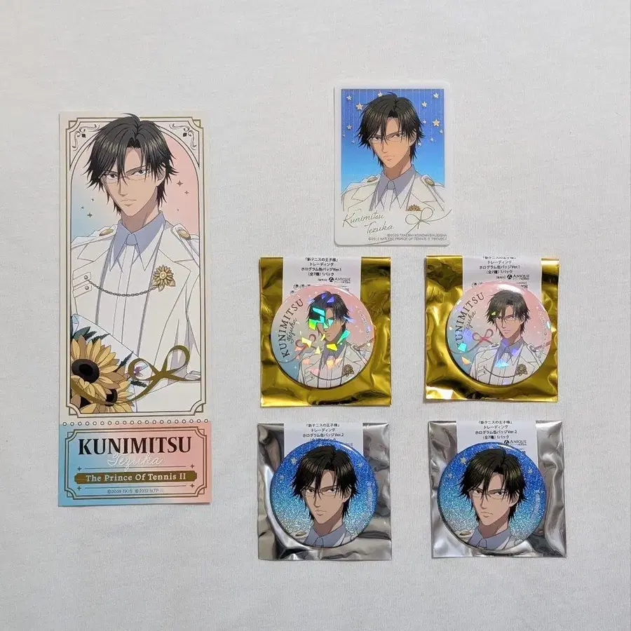 신 테니스의 왕자님 중국 여름날 발렌타인 테즈카 쿠니미츠 트레이딩 홀로그램 캔뱃지 2종 4점 트레이딩 티켓풍 카드 1점 트레이딩 금박 클리어 포토 1점 랜덤 상품이므로 내용물 확인을 위해 개봉했지만, 미사용 새상품입니다. 개인 보관이므로 이해하시는 분 부탁드립니다. 초기 흠집이나 스크래치 등을 신경 쓰시는 분은 삼가해 주십시오.